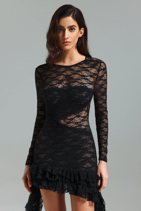Pair it with heels and minimalist accessories for a polished, chic look, or add statement jewelry to make a bold, unforgettable impression. The Edeline Lace Asymmetrical Hem Mini Dress is perfect for women who love stylish, elegant, and unique outfits.