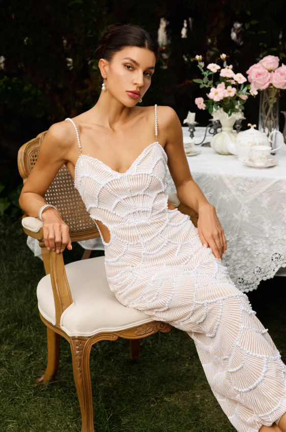 Shine elegantly in the Teresa Pearl Sequin Midi Dress – sophisticated, sparkling, and perfect for special occasions.